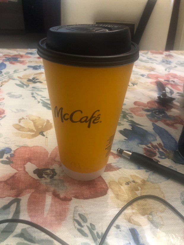 This cup of Joe to the left was to entice me to be productive this morning as I left home and headed over to my sister’s house. Most of my family is out in Colorado for a week-long trip during Spring Break and I’m on auntie puppy sitting duties.
